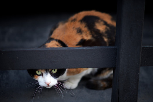 - Thanks for the Mark Of Excellence. This photo has a story: As a professional photog. from Frankfurt, Germany, I'm supporting the city's animal shelter by taking photos of their animals on a voluntary basis. These photos are used for adoption-ads on FB and the shelters website. This particular photo was shot inside the facilitys quarantine-station, because the cat shown is completely deaf and had to be separated from the others. That's why the staff wanted to promote its adoption with nice images, but quarantine-stations aren't the most cozy places. I had to deal with tiles and fluorescent lights everywhere. Instead of animating the cat with toys to get a cliche-shot, I decided to let her explore the corridor and laid down on the floor with my Fujifilm X-T1 & XF 56mm F1.2 lens while the cat walked away from me. When she turned around, she saw me laying there and was extremely inquisitive about that odd human on the floor. While she walked towards me, I took this shot.