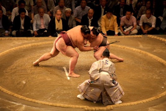- Thank you very much for this Mark Of Excellence award! I shot this picture in Tokyo during the Grand Sumo Tournament, using a Canon 6D, 2000iso, 220mm, f5.6, 1/400. I kept walking around the arena trying to capture the spirit of this multi-contrast ancient national sport: intense and calm, rapid and measured, force and grace. - Victor Mesny.