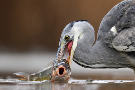 - A real "Nature in the raw" image as the sinister-looking heron dispatches a doomed fish