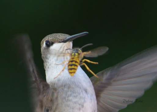 - My name is Debra Rote , I live in Oregon,IL.....I love taking pictures especially unique, uncommon pictures. I was only a few feet away from this scene, which caught my attention to grab my camera . I really enjoy this site and will continue to try and win that first place position. I love those humming birds as well as my camera. Through all my years of taking pictures, the action shots are full of excitement and do take much practice to precise a photo......Thank you to all.....