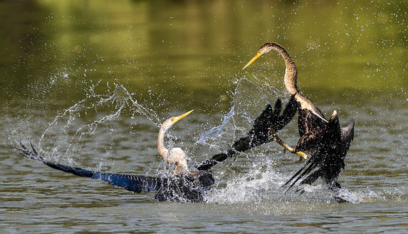 - A fast shutter speed freezes the action in this unusual shot of two fighting anhingas