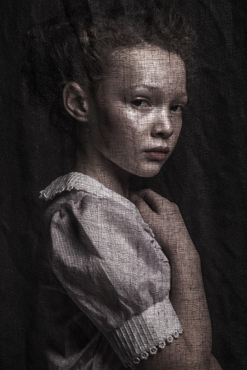 - A beautiful portrait with an attitude that makes you almost see the next 40 years of this person as well. The net and muted colors add an extra beauty and mysterious layer to it as well.