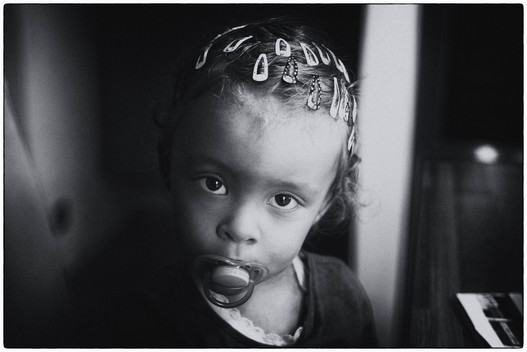 - A girl obviously delivering a serious face for a portrait that takes the price for the pacifier and clips in the hair. Children are adults in small bodies.