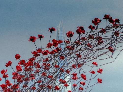- Thank you very much for this recognition. My name is Chris Pattison. I live in the north east of England. This image was made at the Tower of London in the summer of 2014. The Blood Swept Lands and Seas of Red installation was very much in its infancy when I visited the Tower, but this sweep of poppies reaching up like a crashing wave caught my eye. It took a while to find the composition where the Shard finds its way through the poppies without the apex being obscured. This image was taken with a humble Pentax Q compact and the standard zoom lens. I have added some grain texture and a light graduated filter effect in Lightroom.