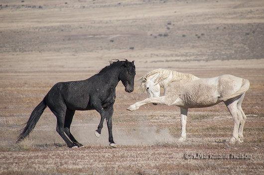 - Hello, I am German and live in Utah, for now. I am a self-taught photographer. I knew when I moved here, that we have Wild Horses. Seeing and watching these Wild Horses is a wonderful experience & incredible! We could see there where 6-7 horses in this little herd. The white stallion you see here in this image was the band stallion. Off to the side a bit, was this black stallion and his brown mare, always off to the side, but always following. We figured the black stallion was trying to steal the white stallions band or become the leader or just try to steal a mare from him. All of sudden the white stallion charged at the black stallion to basically tell him to stay away. Wonderful scene to watch, I grabbed my backup Camera, since my primary camera had the large lens on, that would have not worked, since we were to close. The camera used was a Nikon D40 with a Tamron 18-270 mm. I shot in RAW, the setting was, Iso 400, EV 0.3, f/6.3, 1/500, handheld! Thank you for choosing my images!
