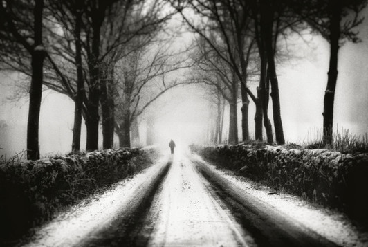 - Beautiful silence and mood in this photograph of a person walking home or away.
