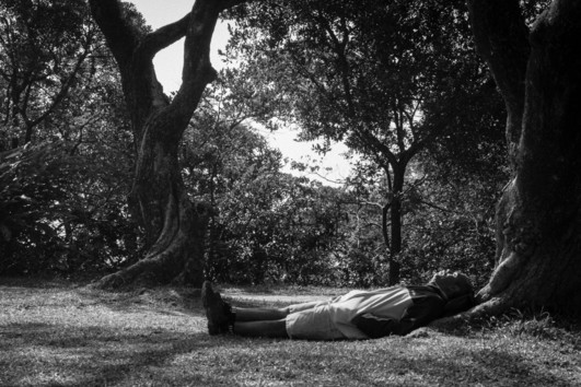 - Hi, my name is Martin Krause, and I am living in Essen / Germany. First of all let me say that I am very happy and proud to be one of the winners of this competition, thank You very much. This photo was taken on a very sunny "Winter"-Day ( 01-01-2015 ) on a walk around the "Peak" in Hong Kong. Just found this man who dreamed himself away for a few moments on a sunny meadow, just a few meters away from the path where crowds of people enjoyed their holiday and the first beautyful day of the year which has begun a few hours ago. Shot was taken with a Panasonic GH-4 with Lumix G-Vario 2,8 / 12-35, processed in LR5 and NIK silver efex pro.