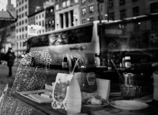 - On the last day of a recent business trip to New York, I was walking around picking up a few last-minute gifts. I passed a diner and noticed this charming lady dressed in her Sunday best, enjoying lunch with a friend. I gestured through the window indicating I'd like to take a photograph of her, which was when her beaming smile appeared. Panasonic GX7, Voigtlander Nokton 17.5mm Post-processed with Lightroom 5
