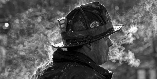 - The photo is of a Boston firefighter who had just put out a fire in an apartment building. It was a very cold early morning. I saw him exiting the building, and steam was radiating off him. As he entered the sunlight from the shadow of the building.I captured this image. The white steam highlighted him along with his exhaled breath. You can also see the smoke stain line on his face. Thank you for the Excellence award. John Cetrino, I was using a Nikon D3, Lightroom for post processing.