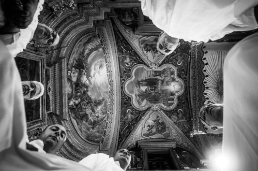 - Paul Borg Olivier, Valletta, Malta - Story behind the Photo: Statue bearers from the Feast of the Shipwreck of Saint Paul, Valletta (Patron Saint. 10.02.2015). The Feast is an important mark in Malta's Cultural Heritage and National Identity. The men are resting after a long procession and the photo was taken shortly after the euphoric entry of the statue in the church. An emotional moment for the men. A mixed feeling of satisfaction,exhaustion and national pride. The Photo was shot with a Leica M9P and a 21 mm f2.8 Avenon lens (ISO 800, F4 1/12sec, set on a self timer at 2 seconds, LR). I ran into the men who were sitting in a circle and rested the camera on its back. As they stared at the camera they had no time to think or talk about what was happening before the shutter clicked. They were happy as much as I was with the outcome.