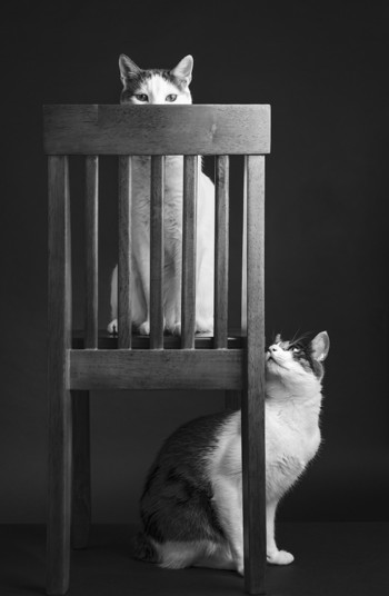 - This photo was taken in a studio session with two of my cats. I had a child size chair set up and immediately the cats were playing and interacting with each other and me. This was taken with a Canon 5D Mark 111 and EF 24-70 2.8 11 lens and converted into black and white. Thank you for the Mark of Excellence award.