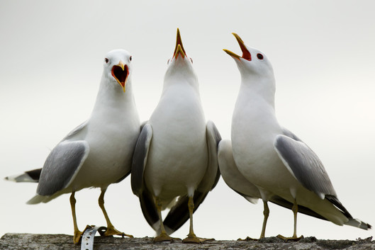 - The 'barber shop choir' poses of these calling gulls were well observed and captured.