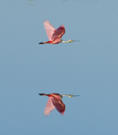 - Thank you for your selection of my photo. I am Mike Hutsenpiller a retired veterinarian living in Victorville CA. This was taken at Merritt Island Florida in a wildlife park called The Savannahs. The camera used was a Canon 5D. This was early in the morning without any wind which made this reflection of the Spoonbill possible. ​