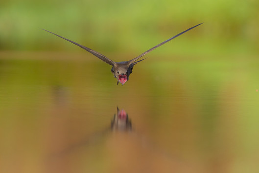 - A fast moving Pallid Swift captured as it is diving towards a small pool of water with its mouth wide open to grasp the floating insects from the surface of the water. Canon 7D, 300mm lens-2.8L + 1.4 extender, Bean bag Photographer: Nikos Fokas