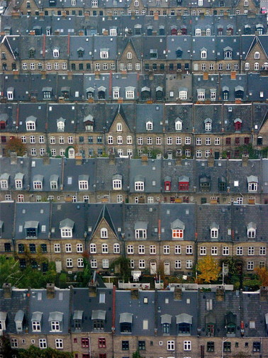 - These houses are part of Humleby, a part of Vesterbro which is itself a district of Copenhagen, Denmark. The shot was taken from the top of the Carlsberg Group HQ in 2006 using a Leica Digilux 2. Post processing involved a small crop and a minor amount of burning in around the top half of the image to counter some mist - it was quite a dull, misty day. If you have seen the Danish TV drama series called "The Killing" you may recognise this area as some of the series was filmed on location here.