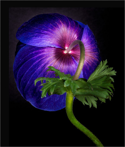 - Anemone flower shot with natural light in a greenhouse in NJ. Canon 6d with 100mm 2.8 lens 1/125 sec f/22. Plant was in a 6" pot, that I positioned on its side in front of a black background. Processed with lightroom/perfectly clear.
