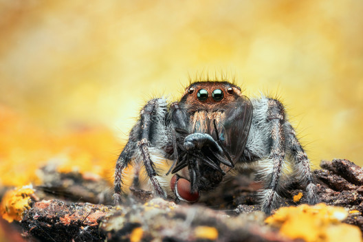 - Beautiful photo of the jumping spider with its prey! Superb development, soft colors go well for this image, the sharpness is really good! Great work!
