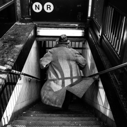 - As in a book you imagine the mysterious man running down the stairs to the subway, and you think … what’s next? There is something Marvel superhero about this one, it has a lot of great qualities that make it great. The wind in the coat, the sun and shadow, the hat and the slightly tilted crop. Beautiful!