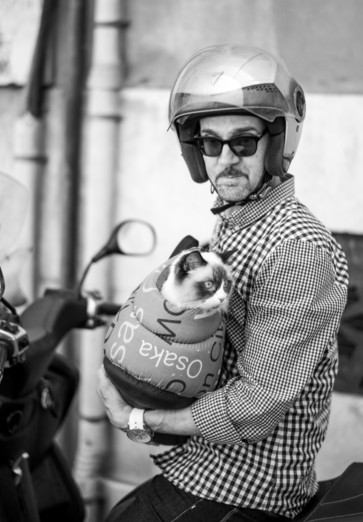 - A real poser. We love the similarity between the cat and its quirky man.
