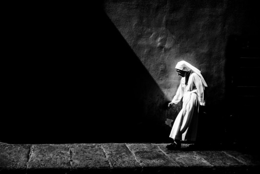 - Another quiet drama plays out in this photograph where the empty space, light and shadow and the position of the woman makes this very simple composition utmost interesting.
