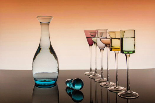 - Hello, thank you all for the votes. This shot was taken with a Canon EOS 60D of hand-crafted wine glasses from Italy, The background consists of an image gradient created in Photoshop and displayed on our TV. The black, reflective surface was made from Plexi-glass with 2 coats of flat-black painted sprayed on the opposite side.
