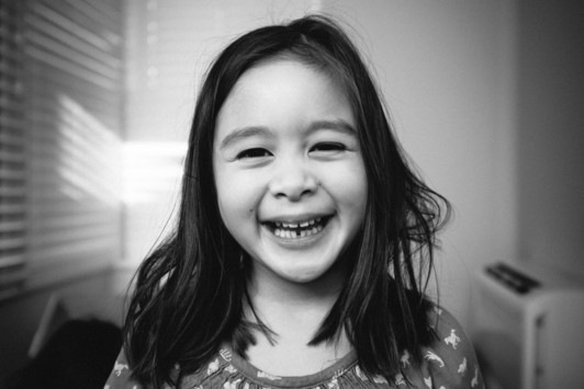 - By Carl Osterly. This is my niece Mia. The photo was taken at her home on a Fujifilm X100S at 1/250 sec at F2.8 ISO 1000. Black and white conversion and some tonal adjustments were applied in Lightroom. The image was resized and sharpened in Photoshop. I instructed Mia to close her eyes and asked her not to open them until I had counted to three. On the third count she opened her eyes laughing out loud and that is when I took the shot!