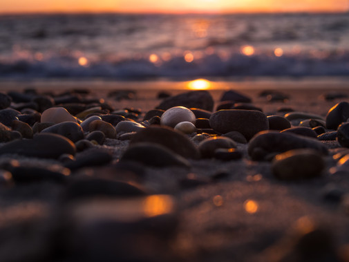 - The sunset, the sea, the beach, the sand and stones, the lovely warm light, this is all so real…You have captured all the ingredients of this scene within this wonderfully simple shot and you have written a whole story with just a few stones. Very nice :-)