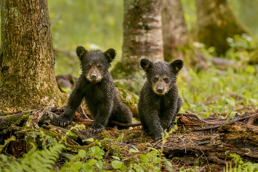- Well how cute can this get? You have portrayed these cheeky looking bear twins with so much character, all wet and up to bear cub mischief in the woods. They look curiously surprised but pose so naturally for your photo. Mother can’t be far away…mind your back :-)