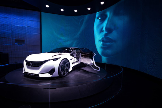 - Absolutely correct! I shot this picture at Peugeot's booth at Frankfurt Motor Show (IAA) earlier this year. I had a lot of "fun" because the car was turning 360° constantly and the background video was changing fast. This lead to probably 1000 variations of the picture on one hand. But on the other hand it was a lot of work to find the right combination of car angle and backround picture. I am very happy that you like the result.