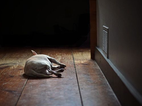 - this image was an instant fave. the wonderful textures from the old worn wood floor, the baseboard, the metal vent, and the hair of the dog keep our eye moving through the image to discover more with each viewing. great use of shadow and light to allow the subject to stand out, and the low angle makes us feel like we're right there in this calm, quiet setting. nicely done! ~ illona