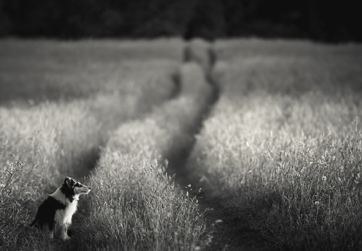 - Thank you for the mark of excellence, I'm very humbled and honored. I am an amateur/hobby photographer in Massachusetts. This field in my town is called Half Mile Hill and is most beautiful in the spring when the grass is young and long. I was taking in the scene when I caught my dog doing the same, so I took some shots of her; I used my Fuji XT1 and Canon 135mm lens. I adjusted the horizon and composition in Photoshop and converted to black and white in Lightroom. Thank you for the kind words about it.