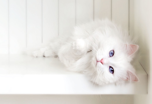 - what a beautiful, minimalistic image. wonderful white balance and focus, and strong framing...and the cat's focus with those pale blue eyes in this sea of white is piercing. nicely done! ~ illona