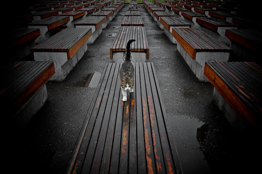- what a fabulous and immediately compelling image. the story-telling quality of this photo adds to its strength. the choice to convert to (shoot in) black and white keeps the elements simple. the distant buildings directly behind the cat, with the strong horizontal lines, are a little distracting, and if there was a way to edit these 'harsher' buildings out, i would advise that. but it is still a magical and unique image. nicely done! ~ illona