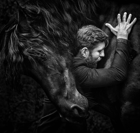 - what an absolutely stunning image. the deep blacks and clean whites add to its strength. the variety of textures is rich and keeps inviting us back to see more details. the strength and sentiment captured in this image is fabulous. i do find the lack of focus on the horse's face to be a little distracting, but overall an absolutely fabulous image. ~ illona