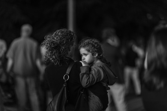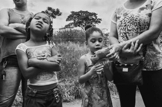 - Graham Martin, Dublin. I shot this scene with a Fuji X100 and converted it to b&w in Lightroom 4. It was taken in a small city called Nova Serrana in the Brazilian state of Minas Gerais. I liked how the girl on the left was acting tough (in a 'Frozen' t-shirt) and almost mirroring the body language of her mother behind, while the other girl shared a Pastel with her mother. Thank you for your consideration and selection for this mark of excellence.