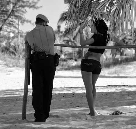 - Well captured moment that is almost classic. The uniformed man and the beautiful woman. The rest of the story is up to the viewer.