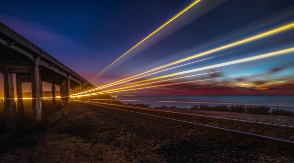- The Amtrak Surfliner passing under the Del Mar Bridge in San Diego CA at sunset. Canon 5Ds