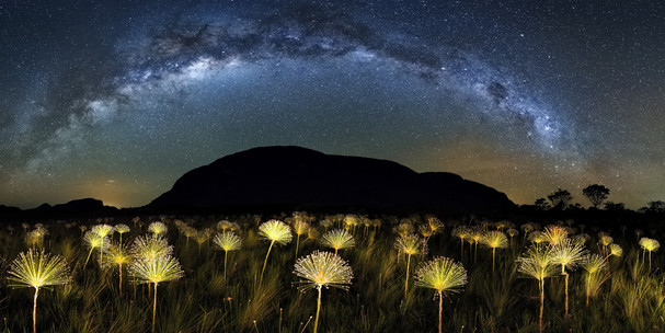 - This is amazing and so complicated to pull off. What a clever mix of celestial and artificial light, all of those plants gazing up to the Milky Way over that black hill. Clever work and a stunning result, well done.