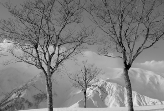 - Eli Greig Deciduous trees, mid winter on top of Hakuba Goryu, the Japanese Alps. A storm approaches. A remarkably beautiful place. Olympus Pen Post processing, nothing more than a traditional dark room tech, some dodge and burn, desaturation and some work with brightness and contrast.