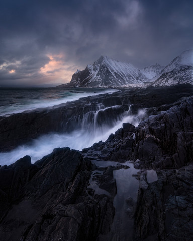 - Certainly this is a remarkably wild spot and you have captured that last ray of red light on the cliffs but especially in the spray from the wave. Well done, we’ll gladly see more like this please :-)