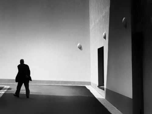 - We feel he is walking in a landscape but after a while we realize it is inside a building. The composition of shadows and highlight makes us keep looking.