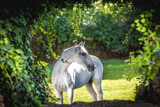 - The framing of this image and the natural framing of the subject is wonderful in this photo, including the sweeping vines and the lush greenery, the little pops of color of flowers. It's unfortunate that the highlights on the horse's back and side are so harshly blown out as this is where the viewer's eye is immediately drawn. In a lot of cases when shooting animals you don't always have the opportunity for adjustments and second or third takes, but this is a case where - if you'd had a second chance - under-exposing would have been preferred so as not to lose the highlights in this tricky situation, and then bring up the rest in post. But wonderful framing and vision. ~ illona