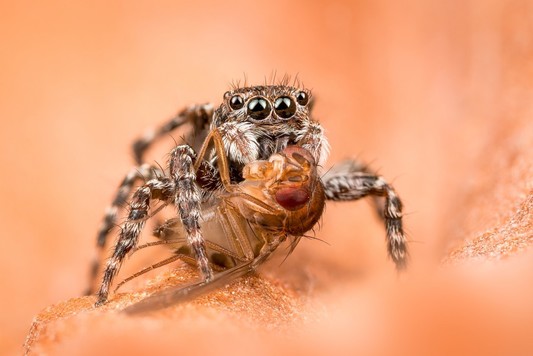 - Superb hunting scene this jumping spider with its prey! The clarity is superb, the focus is just perfect, composition and colors are impeccable, an image of beauty!