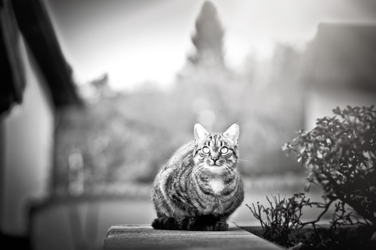 - This is a spectacular black-and-white image. The shallow depth-of-field, the sharp focus on the cat, and choice to convert to black-and-white, make the cat truly stand out. I do find the top corners somewhat heavily vignetted, which draws attention somewhat from the cat, but otherwise, a wonderful image. ~ illona