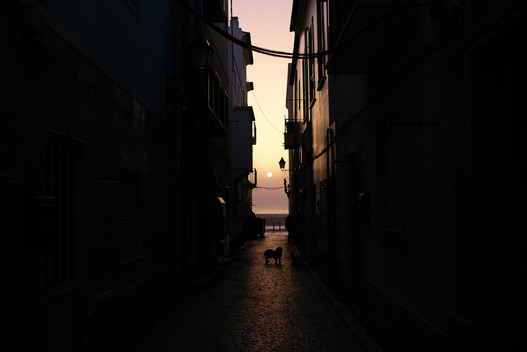- This is such a fabulous image ... the deep shadows, the leading lines of the building, the low glow of the setting sun on the cobblestones, and the silhouette of the dog. Wonderfully seen and managed in post. ~ illona