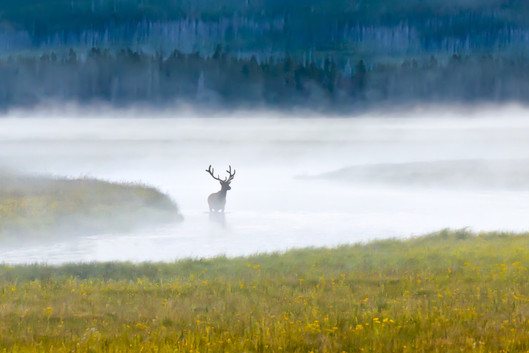 - This shot was taken on an early morning drive in Yellowstone National Park. The wildlife in the park comes alive during the early morning hours. As I was stopped on the side of the road this Elk appeared through the rising water vapor. Thank you for your votes. Janet Fikar