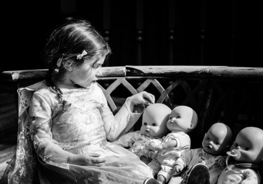 - You have captured a scene that is hard for me to interpret. On the first sight it has a protective effect on me. But it also seems intriguing, increased through the strong black and white contrasts and her facial expression. However you would like to interpret this picture it attracts attention and tells a story!