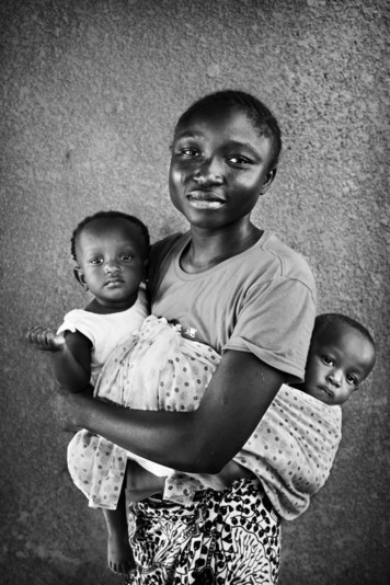 - A picture of a young lady carrying her two children. She looks straight into the camera. Her facial expression tells a lot! An Impressive picture! Great work!