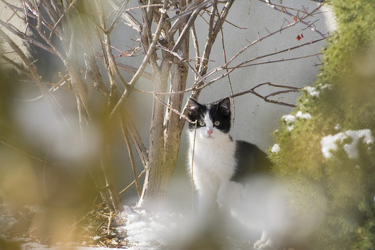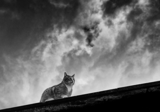 - This image's strength is in the framing and simplicity of elements, along with some great management in post converting to black-and-white. I do find that there could be more shadow on the cat, and that because of the editing the cat looks a little over-lightened and washed out. But a great capture and framing! Nicely done. ~ illona