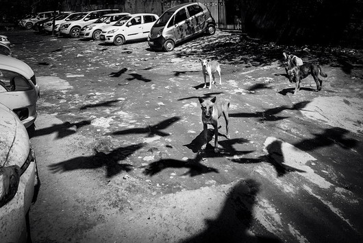 - We know what is in the sky even though we cannot see the birds. Did the dogs chase the birds? A very original street scene. Great capture!